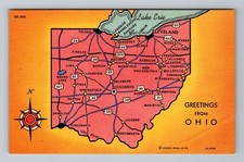 OH-Ohio, General Greeting, State Road Map, Landmarks, Antique Vintage Postcard