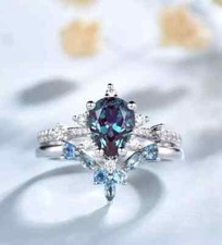 3Ct Pear Simulated Alexandrite Bridal Women Ring 14K White Gold Plated Silver