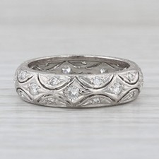 Antique Diamond Wedding Eternity Band Platinum Ring Size 8 UK-P1/2 EGL USA Deco