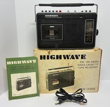 Vintage HIGHWAVE CS-2200 AM/FM Radio Cassette Player, Cord, Manual, Box - Tested