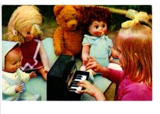 Vintage QSL Radio Card USSR Minusinsk UA0BL Girl plays toy Piano Dolls Bear 1980