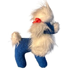 Vintage 1960s 1970s Toy White Blue Poodle Plush Stuffed Animal Beaded Collar 15”