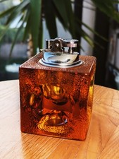 Mid Century Ice Cube Style Glass Table Lighter Amber Vintage