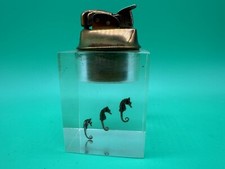 RARE ORIGINAL VINTAGE MID CENTURY CUBIST ACRYL BLOCK Seahorse DESK LIGHTER