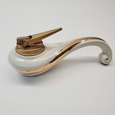 1950s Ronson “Fantasy” Table Lighter Fine China Gold Plume‑Arm Mid‑Century
