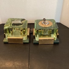 Vintage Mid Century Brown & Bigelow Neptune Green Crystal Table Lighter &Ashtray