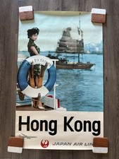 Vintage 1950s Travel Poster Hong Kong JAL Japan Airlines Signed Diamond AS IS