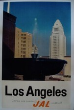 JAPAN AIRLINES LOS ANGELES Vintage Travel poster 1958 LINEN BACK 25x39 RARE NM