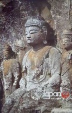 JAPAN AIRLINES USUKI STONE BUDDHAS 1981 Vintage Travel poster 25x39