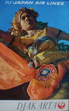 JAPAN AIRLINES DJAKARTA INDONESIA 1968 Vintage Travel poster 25x40 NM