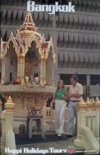 JAPAN AIRLINES HAPPI HOLIDAYS TOUR BANGKOK 1974 Vintage Travel poster 24x39 NM