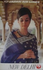 JAPAN AIRLINES NEW DELHI INDIA 1970 Vintage Travel poster 25x39 NM