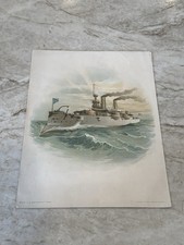 Antique 1898 US Battleship Iowa USS BB-61 Ship Koerner & Hayes 9x11.5” Print