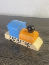 VINTAGE WOODEN CHILDS TOY STEAM TRAIN LOCOMOTIVE BLOW WHISTLE CHOO CHOO 9" EUC