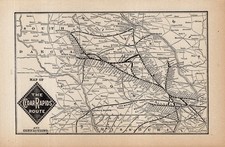 ~1896 Antique Railroad Map Indiana & Illinois all train routes Stations 9x11"