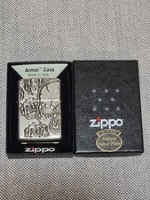 Zippo Armor Case Arabesque Antique Silver Etching 4 Sided Processing Lighter