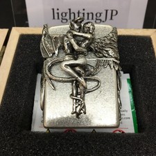 Zippo Angel Devil Wing Antique Silver Heavy Zippo Lighter In Wood box NEW Japan
