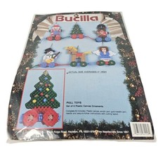 Vintage Bucilla Christmas Pull Toys 4 Plastic Needle Work Ornaments Holiday