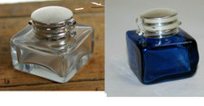 2 inkwells Vintage Antique Style Square Cobalt Blue & Clear Glass Bottle Ink