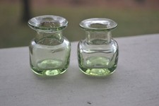 Pair of Vintage or Antique Small Green Blown Glass Ink Pots Bottles