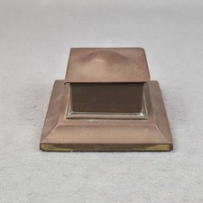 Vintage Antique Square Brass Bronze Hinged Lid Inkwell Removable Glass Insert