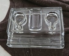 Double Inkwell and Pen Holder, Clear Heavy Glass, Vintage/Antique