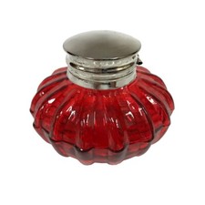 Vintage Antique Style Red Glass Inkwell Bottle ink 3'' x 2.5''