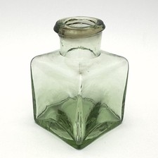 VINTAGE/ANTIQUE GREEN GLASS SQUARE INKWELL BOTTLE