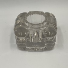 Vintage Antique Heavy Clear Pressed Glass Square Heavy Inkwell No Lid - 2.5"