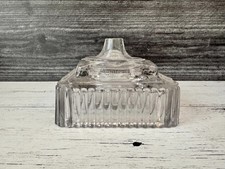Antique Vintage Desktop Glass Cube Fountain Pen Paperweight Ink Well HEAVY