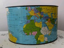 vintage tin litho world map desk organizer or small wastebasket 1950s or 1960s