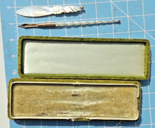 Antique boxed dip pen and letter opener with silver shaft and opener handle, wit