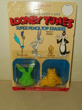 Vintage Diener LOONEY TUNES BUGGS BUNNY & SYLVESTER Pencil Top Erasers 1983 Nos