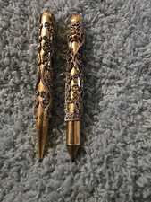 Antique Lot Ornate Gold Filigree Jeweled Pen & Pencil Set with Companion Piece