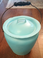 Vtg Antique Enamel ware PAINTED Teal Blue Large Lidded Slop MILK POT Urn shaped