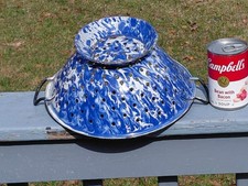 Antique Graniteware Blue & White Swirl COLANDER Enamelware