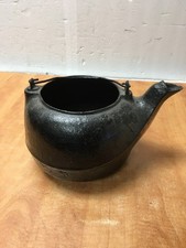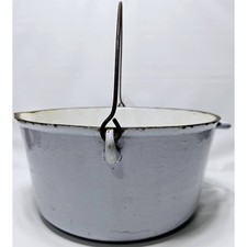 Antique Cast Iron #8 Enamel Porcelain Pot Cauldron Kettle Handle & Pour Spout Bl