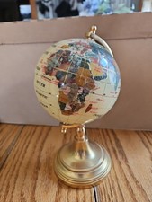 Vintage Gemstone MOP Mother Pearl Inlaid World Globe Brass Paperweight Trinket