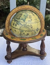 Vintage Old World Italian Mini Globe Zodiac Signs Terrestrial Wooden Rotating 9”