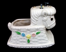 Vintage Napco White w Flowers Rocking Horse Nursery Music Box Planter