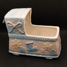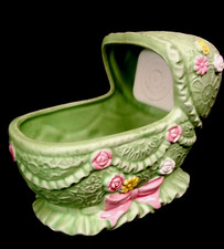 Vintage RUBENS Ceramic Bassinet-Shaped Planter & Music Box (Rock-a-Bye Baby)