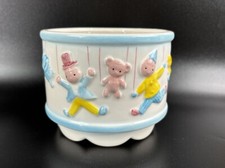 Vintage Relpo Japan Round Music Box Planter Pastel Baby Boy Or Girl Marionette