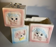 VINTAGE CERAMIC LAMB ABC BLOCKS PLANTER MUSIC BOX WORKING MID CENTURY NURSERY