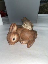 Vintage Mother Rabbit Snuggling Baby With Music Box Playing Rock A Bye Baby