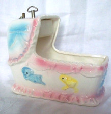 Vintage 1950's Baby Shower Gift Trinkets My Neil Music Box Bassinette Glazed