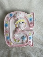Vintage Baby Girl “G” w/frog Nursery Planter With Music Box Japan 3292