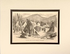 Original Antique 1873 b&w print: IN CAMP WITH THE OUTLAW NAVAJOES + free mat