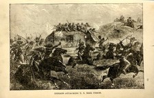 Original Antique 1873 b&w print: INDIANS ATTACKING U. S. MAIL COACH + free mat