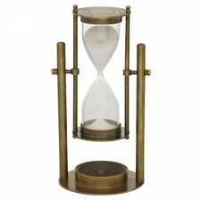 Antique Designer Brass Sand Timer Maritime Vintage Hourglass & Brass Compass