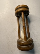 Antique Wooden Hourglass Sand Timer Hand Turned Wood 3 Post Frame